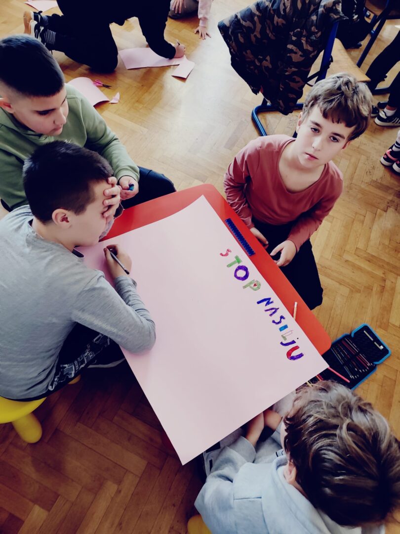 U drugom dijelu aktivnosti učenici su u skupinama izrađivali plakate s porukama protiv nasilja.